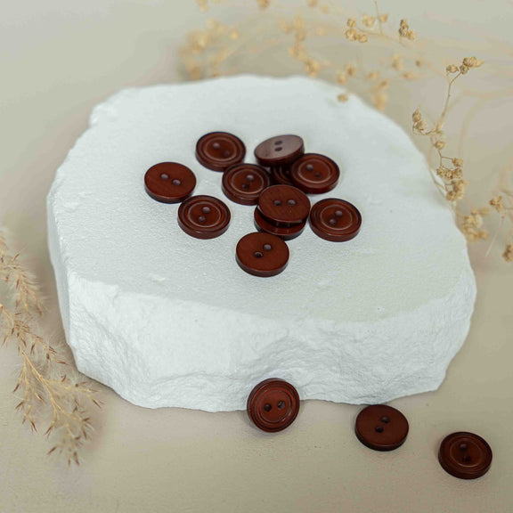 Lolilafée “Classy” buttons are dyed polyester buttons. They are round, and grooved on the edge for a classic look that will go with all your projects!