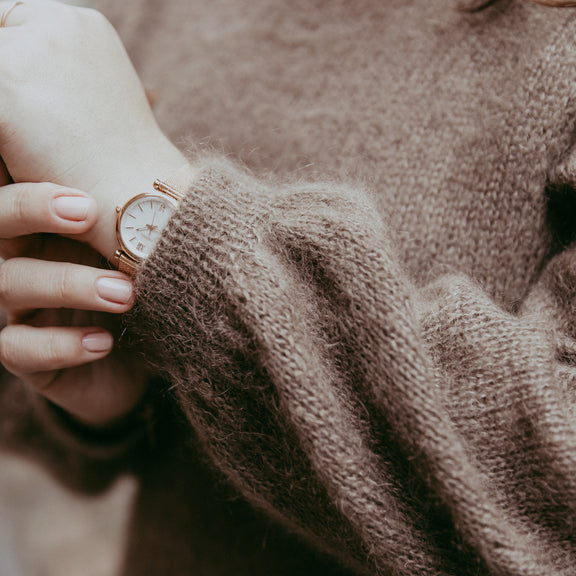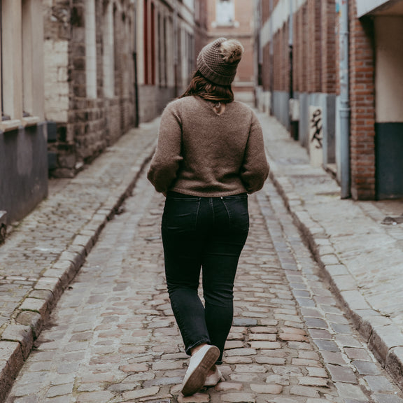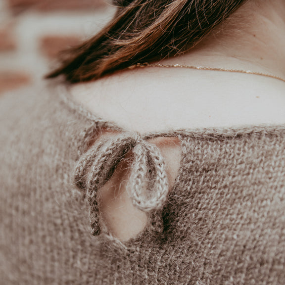 The Génoise sweater is a cozy autumn sweater, knitted with two mohair threads held together.