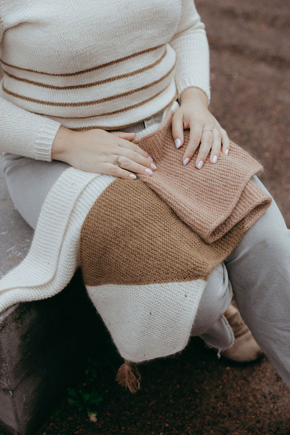 The Berlingot shawl is a triangular shawl knitted in fingering wool. It is made up of different sections which allow you to pace the knitting.