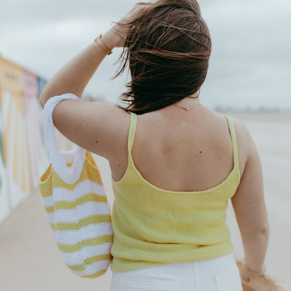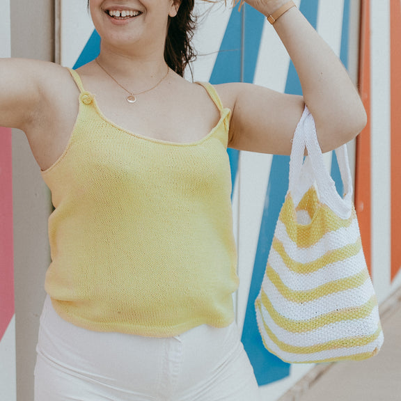 Once summer is over, extend the life of your Lemon bag by transforming it into a project bag! Its capacity will be perfect for carrying a shawl, a top or even a fingering sweater.