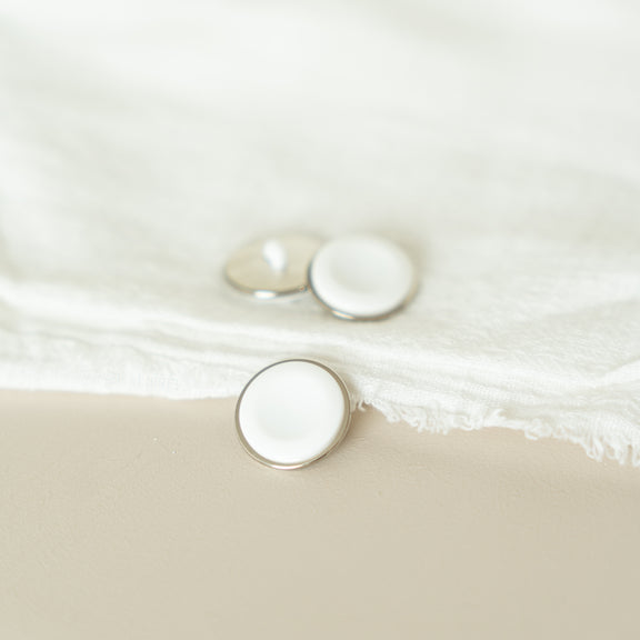 Bouton style vintage en plastique métal argenté et plastique blanc.