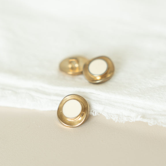 Bouton style vintage en plastique imitation or et pierre blanche.