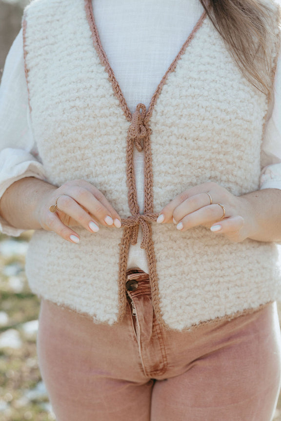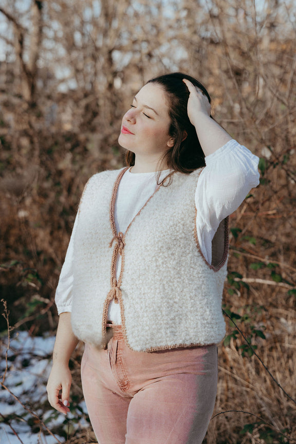 Le gilet Bavarois est un gilet de berger tricoté en point mousse et doté de jolies finitions en icord qui lui apportent une touche “couture”. Vous pourrez vous amuser en changeant de couleur contrastante pour créer