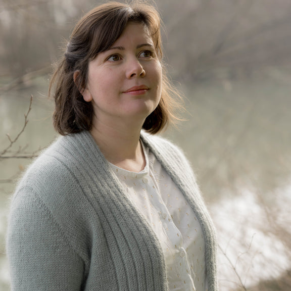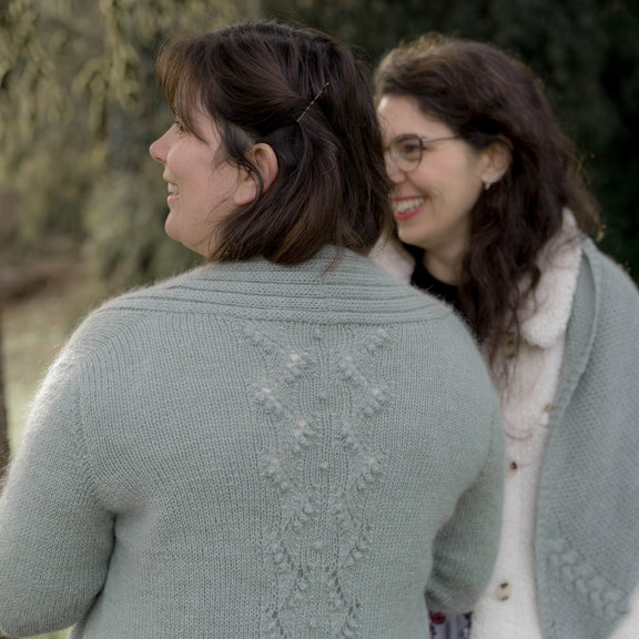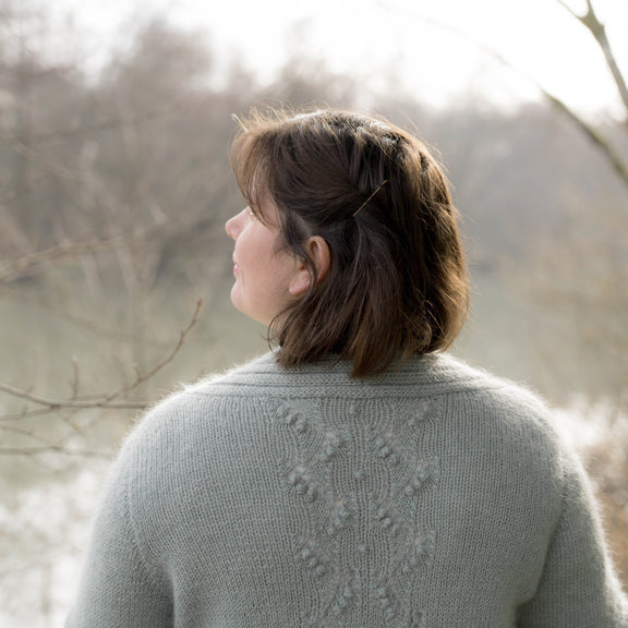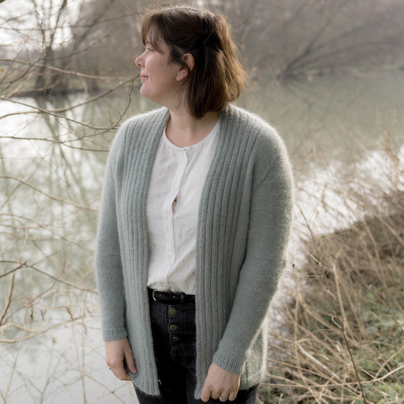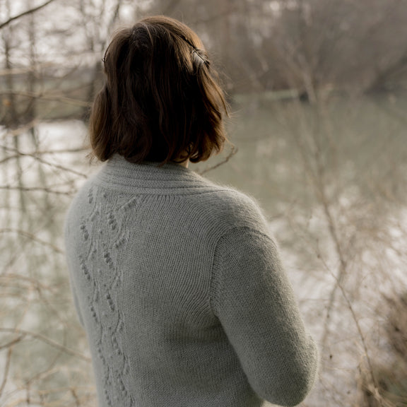 Il est tricoté du haut vers le bas (top-down) et possède une jolie bande de dentelle romantique et féminine dans le dos. Les manches montées apportent au gilet un côté légèrement sophistiqué.