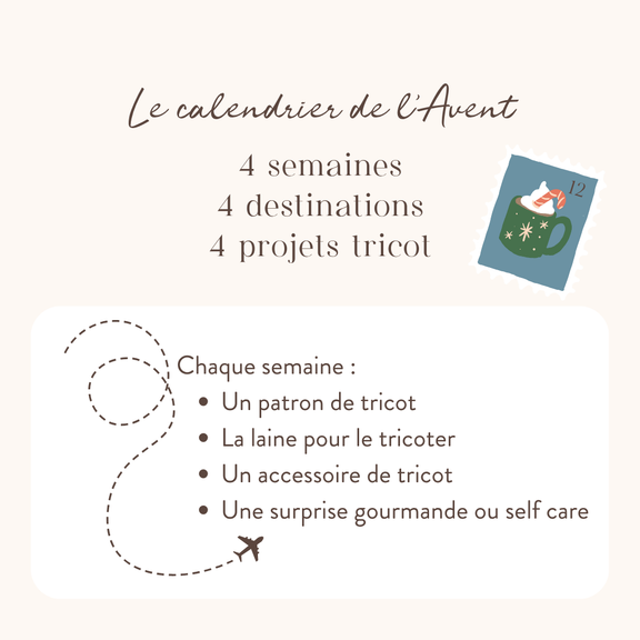 Notre calendrier 2025 est un semainier : vous ouvrirez une pochette par semaine (lundi 1er, 8, 15 et 22 décembre).
