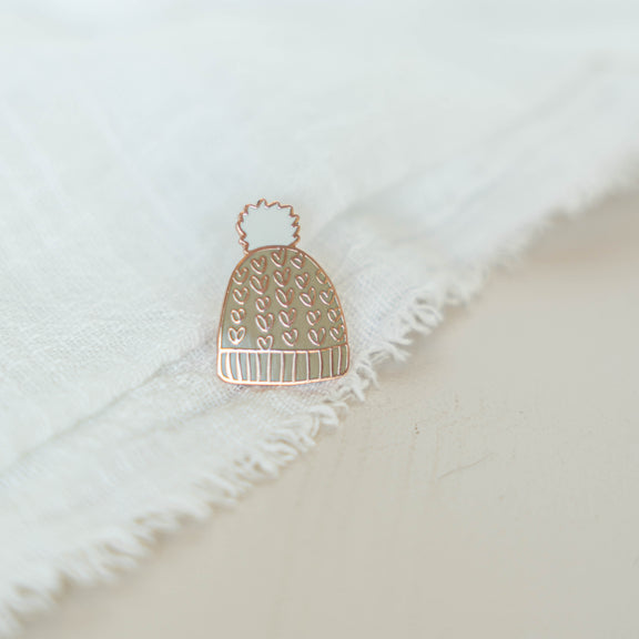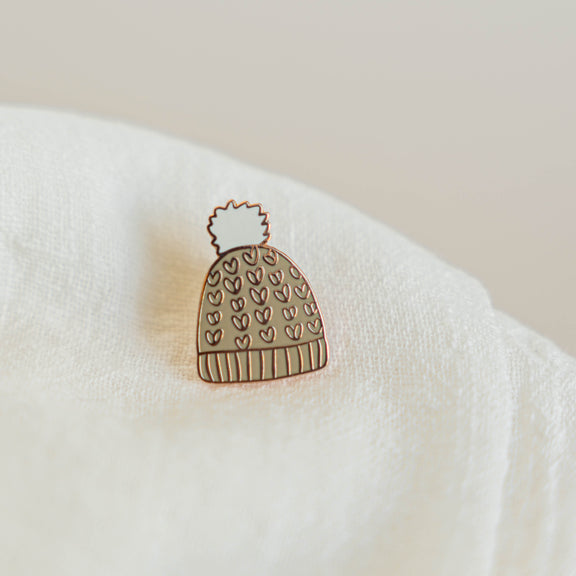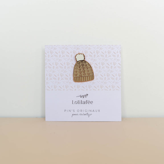 Pin's exclusif représentant le bonnet Velvet (patron téléchargeable dans la section "patrons" du site).