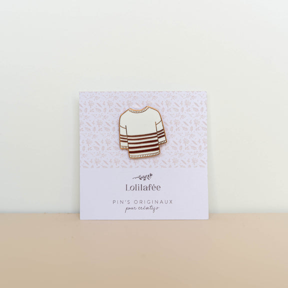 Pin's exclusif représentant le pull Paris Brest (patron téléchargeable dans la section "patrons" du site).