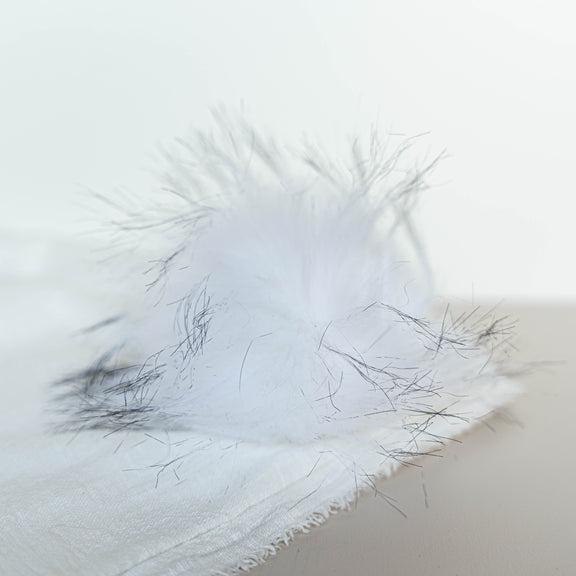 Attention, nos pompons blancs ne sont pas d'un blanc immaculé. Ils possèdent de légères nuances rousses sur les pointes.