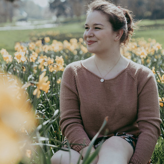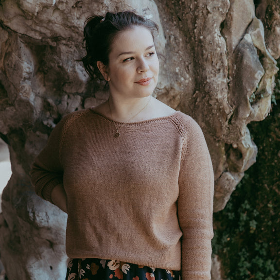 Le pull Cappuccino est tricoté en bottom-up, de construction “raglan”. Il offre une bande de boutonnage dans le dos, qui lui donne son originalité.
