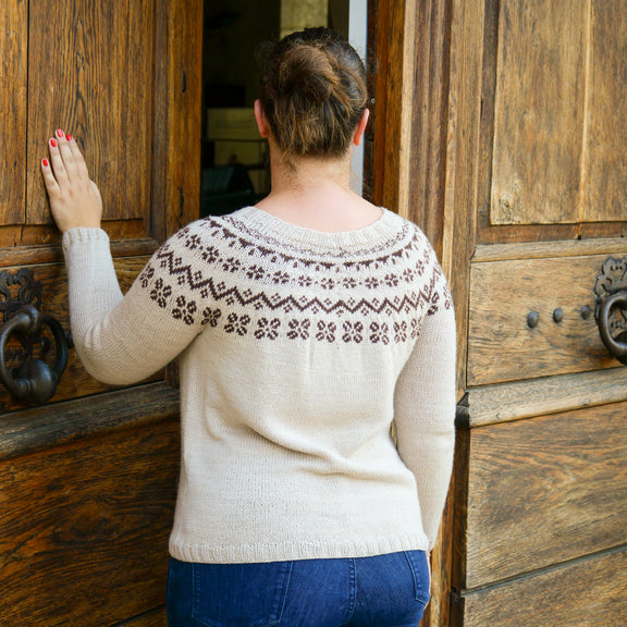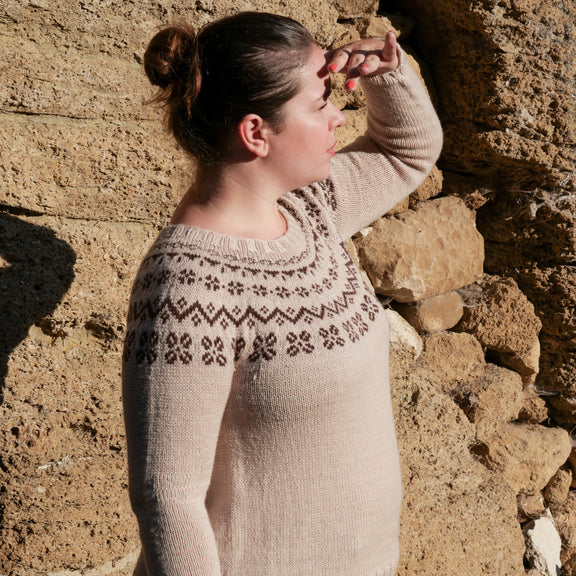 Amusez-vous à le personnaliser avec nos différents toppers, comme celui-ci qui vous permettra de réaliser un magnifique Yoke en jacquard.