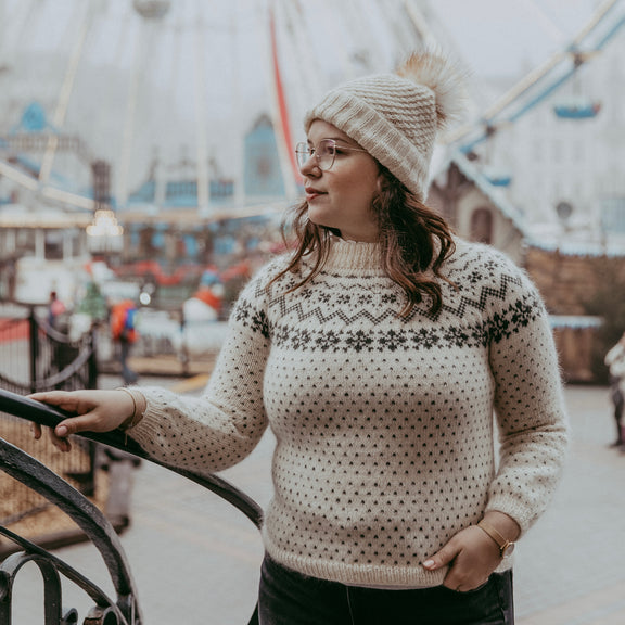 Amusez-vous à le personnaliser avec nos différents toppers, comme celui-ci qui vous permettra de réaliser un magnifique Yoke en jacquard.
