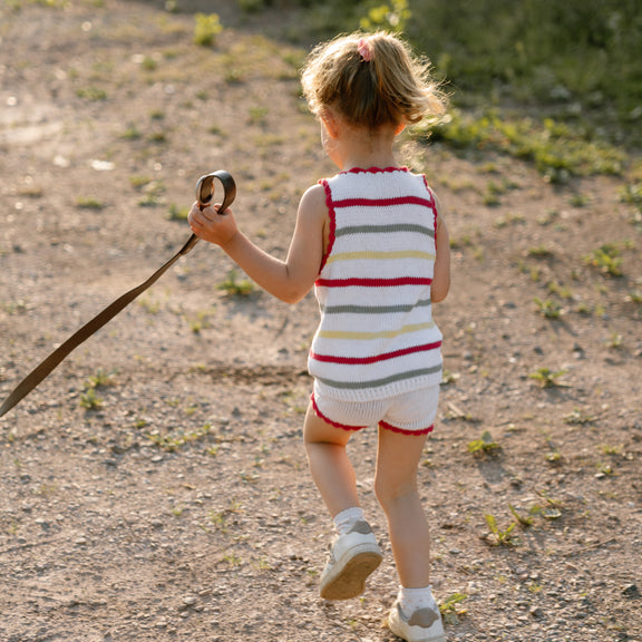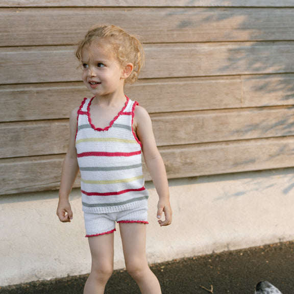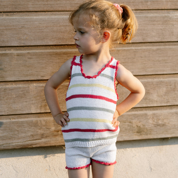 Le set (mini) Rainbow est un ensemble estival pour enfant, plein de peps. Personnalisable à souhaits, vous pourrez le réaliser à 2, 3, 4 couleurs ou même uni si vous préférez un rendu plus classique.