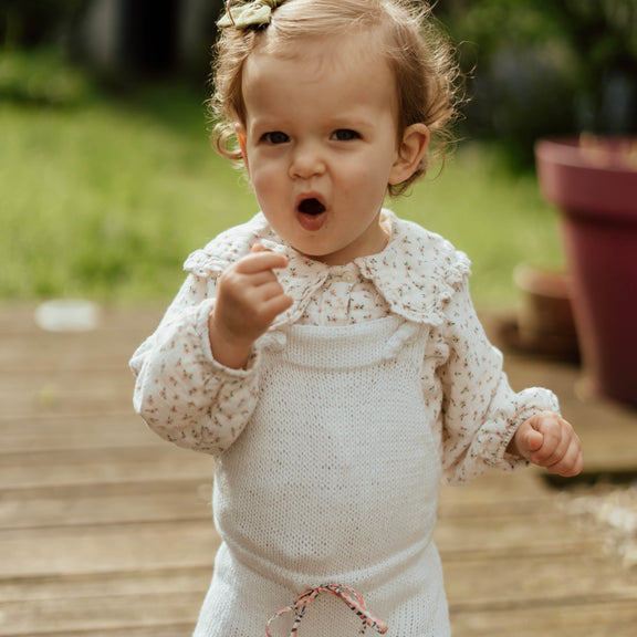 La Summer (mini) Bichon a été pensée comme une tenue d’été confortable et dans laquelle bébé pourra évoluer et explorer son environnement. Tricotée dans un fil coton/cachemire, elle sera douce sur la peau de votre enfant tout en ne lui tenant pas trop chaud.
